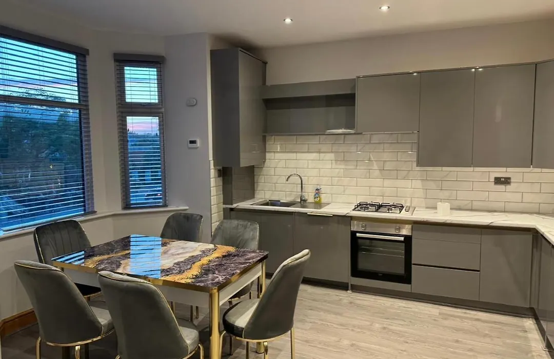 Het heeft een ingerichte kitchenette uitgerust met een oven en een vaatwasser. Chorlton bushalte bevindt zich in de buurt van dit 2-badkamer appartement.